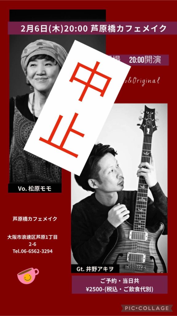 2月6日(木)芦原橋カフェメイクのライヴ中止のお知らせ